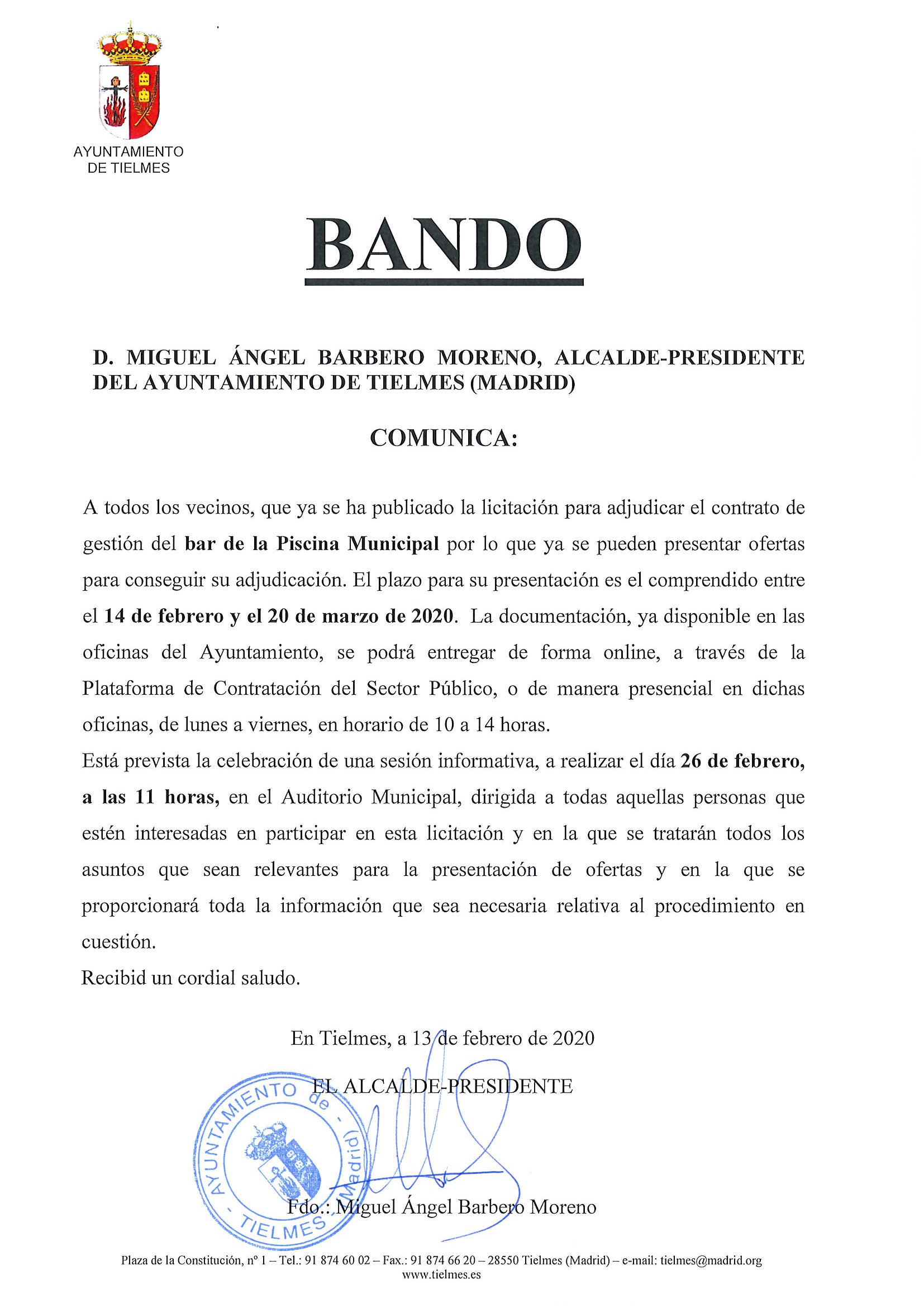 Licitación del contrato para la gestión del bar de la Piscina Municipal